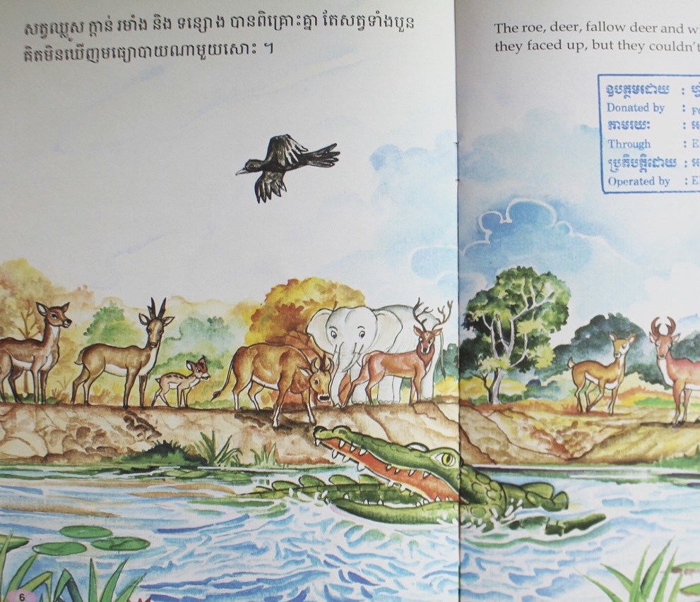 民際センターが、支援しているラオスやカンボジアの子どもたちは本に触れる機会がなかなかありません。昨年、ラオス地方の学校を訪ねましたが支援された本が皆で読むのでしょう、紙が少しいたんでいました。子どもたちが皆でひとつの物語を読み、水辺でアヒルが蛙に話しかけたり、河を登る竜の様子を想像したかもしれません。本に群がる子どもたちの姿を目に浮かべ温かい気持ちになりました。