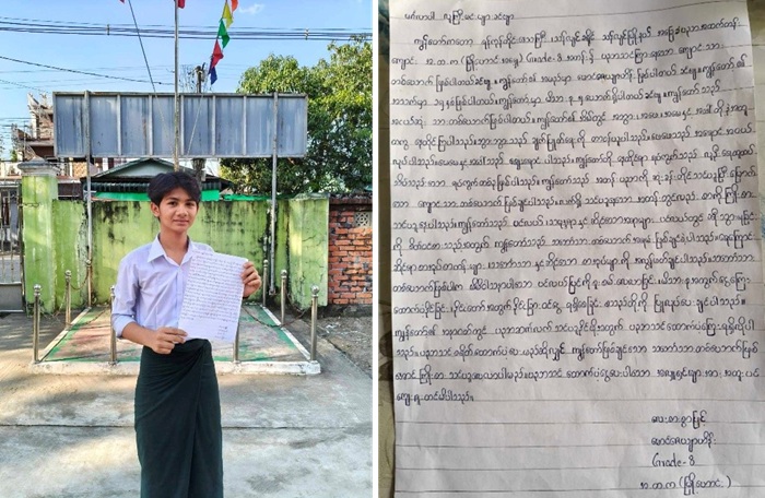 奨学金締め切りを控えるタイ・ミャンマーの奨学生候補の子どもたちをご紹介しています。今回は、ミャンマーの中学3年生ゼイヤー・ヘイン君からのメッセージです。